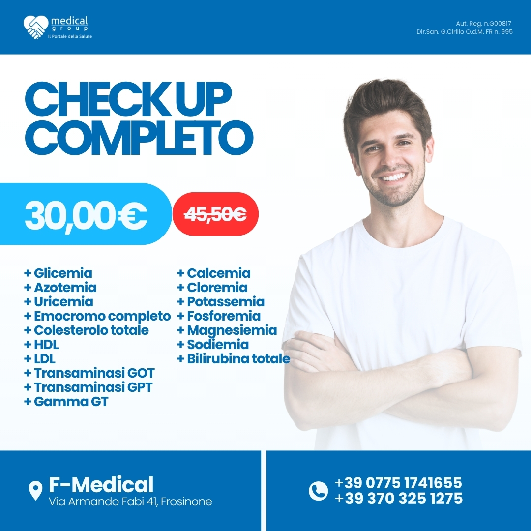 Il Laboratorio Analisi Cliniche del F-Medical Group di Frosinone offre un servizio completo, preciso e tempestivo per tutte le principali esigenze diagnostiche. Grazie a tecnologie di ultima generazione, come analizzatori automatizzati e sistemi di microbiologia e immunochimica avanzata, garantiamo esami affidabili con referti rapidi, spesso disponibili in giornata. Il team è composto da medici specialisti, biologi e tecnici altamente qualificati, sempre aggiornati. Ogni processo segue rigidi protocolli di qualità per assicurare la massima tracciabilità e sicurezza. Prenota i tuoi esami in modo semplice e veloce, con un’assistenza dedicata e orientata al paziente.